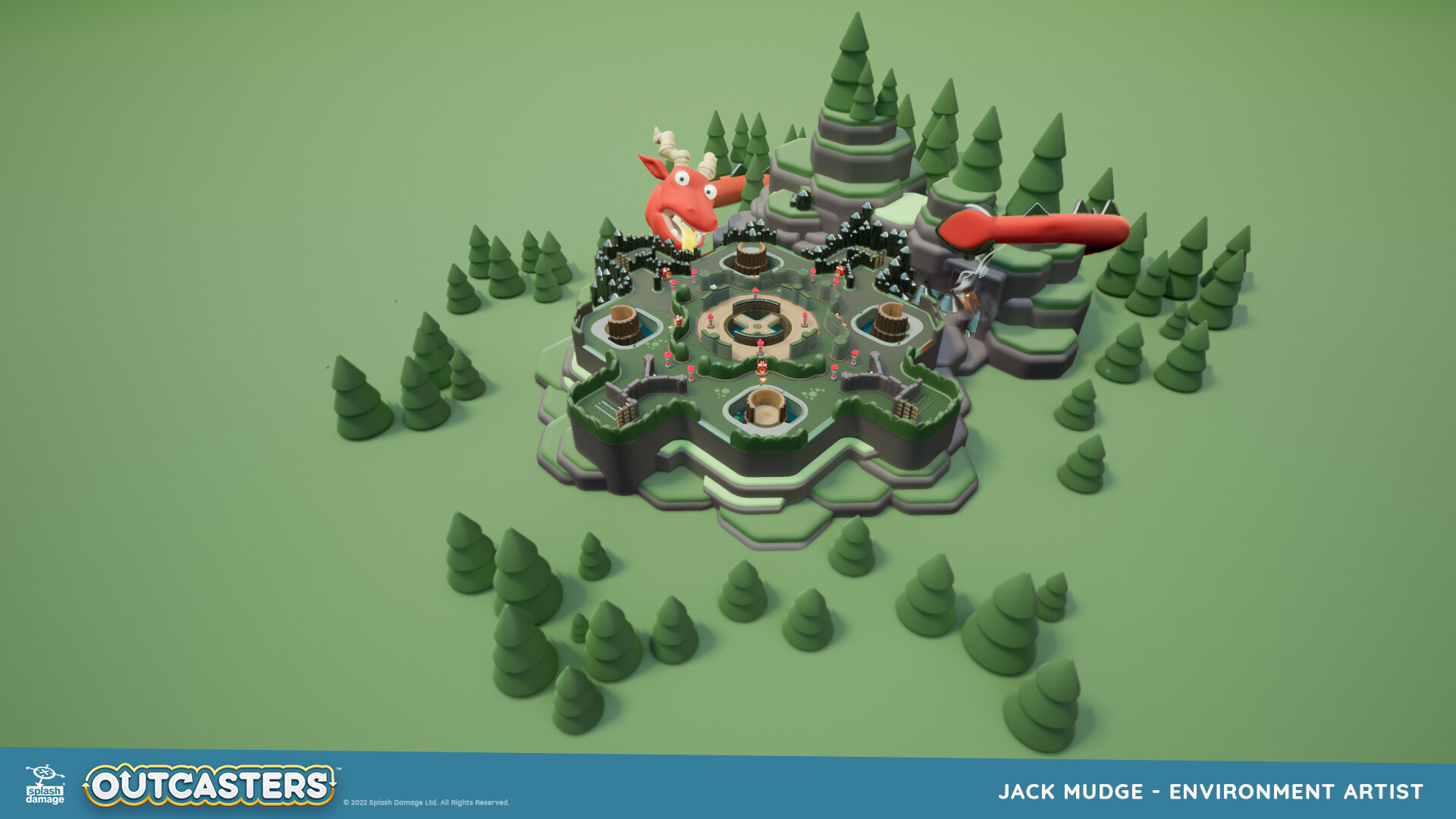 We had a tiny team on this project, so I was able to work on some concepts, meshing, materials (including building some shaders), sequence setup, character modeling (including the giant dragon!), rigging, and even event-based blueprint scripting and animation for the gameplay. We had to redesign some maps for a different treatment but under the same broad theme for maximum variety.
